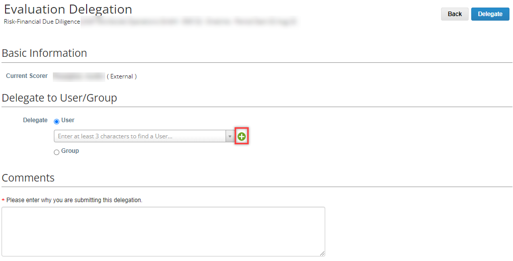 On the Evaluation Delegation page that appears, click the green plus sign: